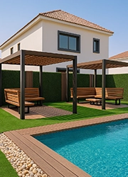 متخصصون في الديكورات الداخلية والخارجية، التشطيبات، تنسيق الحدائق، بديل الخشب، بديل الشيبورد، الباركية، العشب الصناعي، وتجهيز ملاعب الكرة والبادِل.